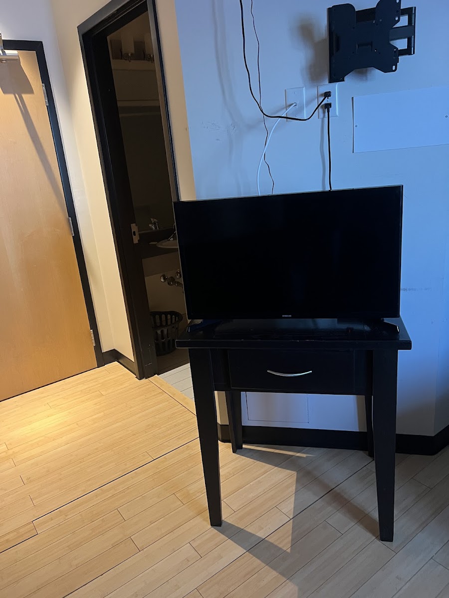 The rooms serve their purpose and they are clean. Having the TV on a table or something where it could actually be seen would've been cool as it was on table that couldn't be moved so it was faced away from the bed . Even a swivel wall mount would work so it could face the bed or the couch. There was a mount on the wall but for whatever reason the TV wasn't on the mount. On the upside though, staff are very friendly and kind .